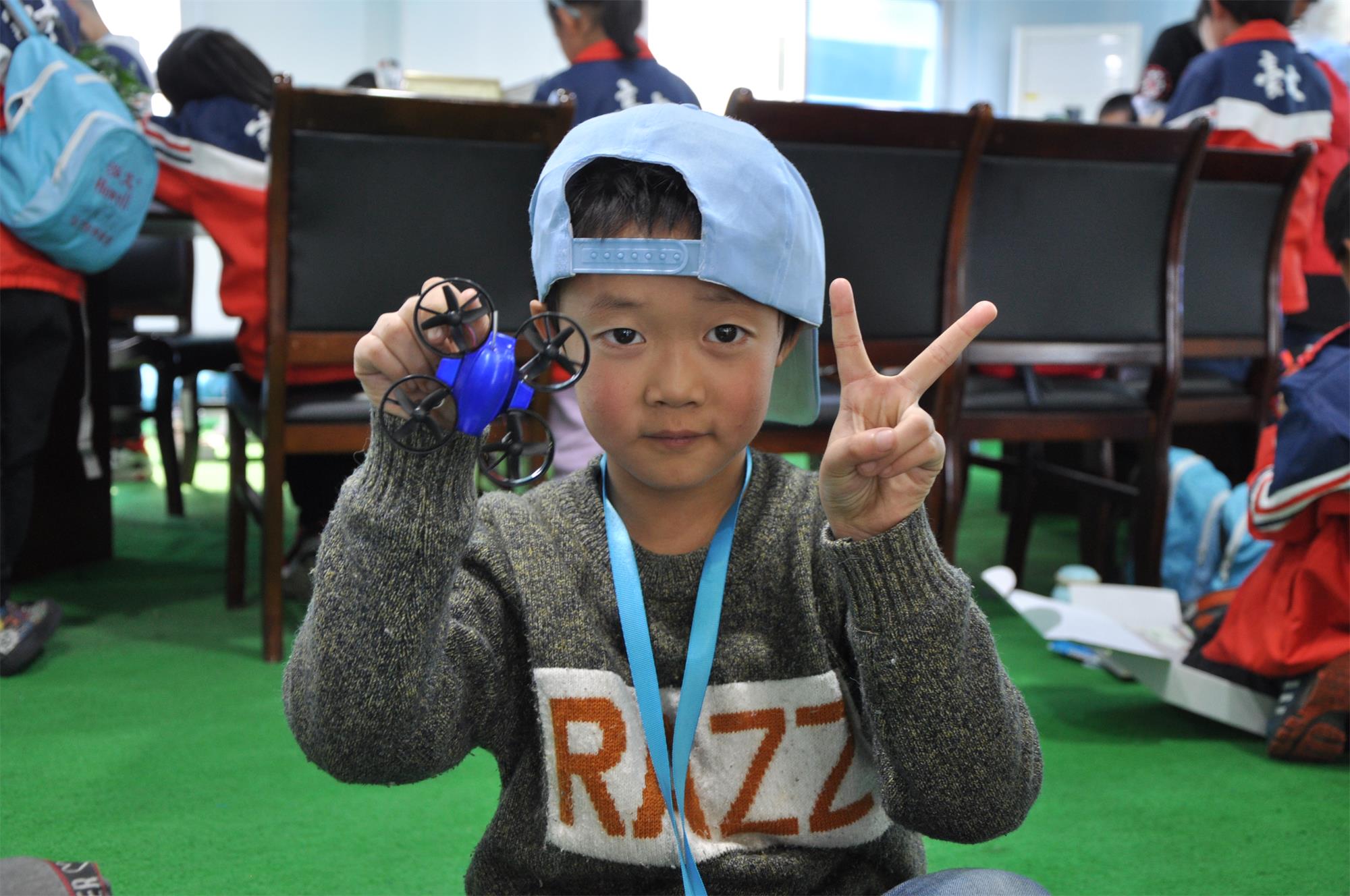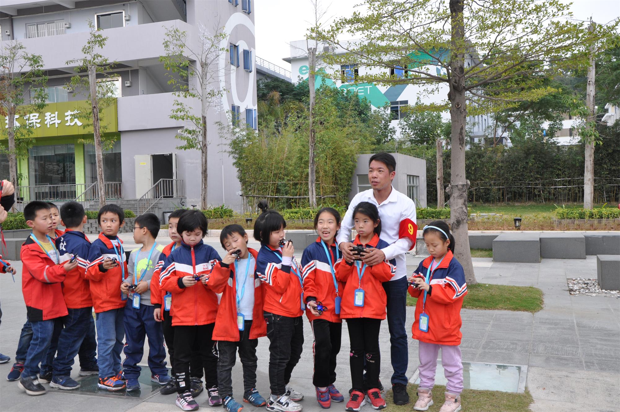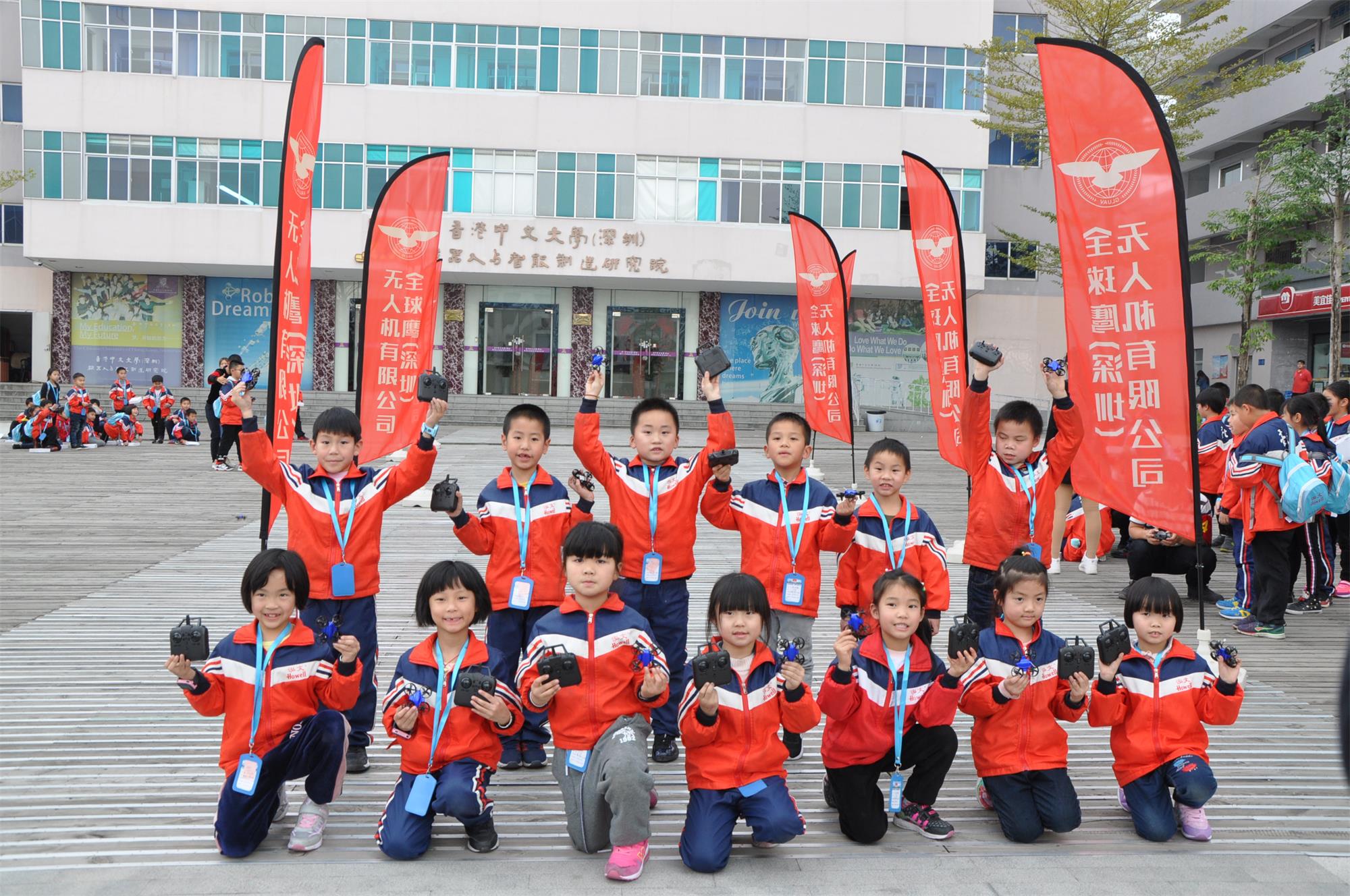 最后,全球鷹老師們帶來同學(xué)們?nèi)ピ囷w自己組裝的無人機(jī),近距離感受無人機(jī)的飛行;而且全球鷹老師分小組讓同學(xué)們操控?zé)o人機(jī)穿越飛行。